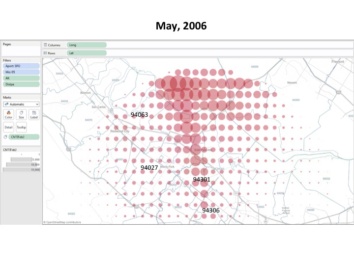 Our community is under the convergence of 3 of the 4 approach routes into SFO, with traffic descending above Palo Alto from the North, South, and West. Few, if any other communities at these distances from SFO, OAK, or SJC experience this daily level of traffic. As airplanes have been flying at lower altitudes and there are more flights, these approaches are more invasive. In addition, traffic congestion causes increased duration of noise when planes make turns to extend their routes over our neighborhoods as they line up for the final approach to SFO.